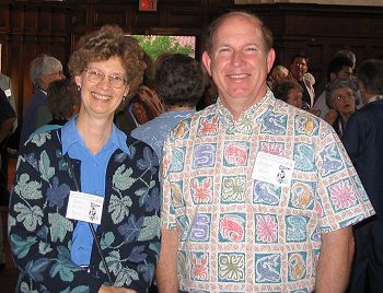 Susan Ellis Bell '75 and husband Roger Bell '74 at the wine tasting session in Frary.