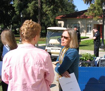 Ann Savage (l) chats with Sundee Morris (r). Is that a current incarnation of Campus Security's "Enforcer" vehicle in the background?