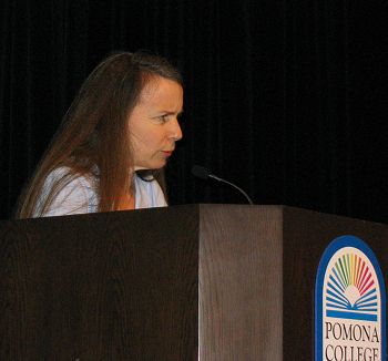 Mary Schmich speaking during the Alumni Symposium: "So You Think You'd Like to Write a Column?"