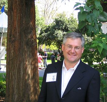 Brian Bean with the Chinese redwood tree on Marston Quad.